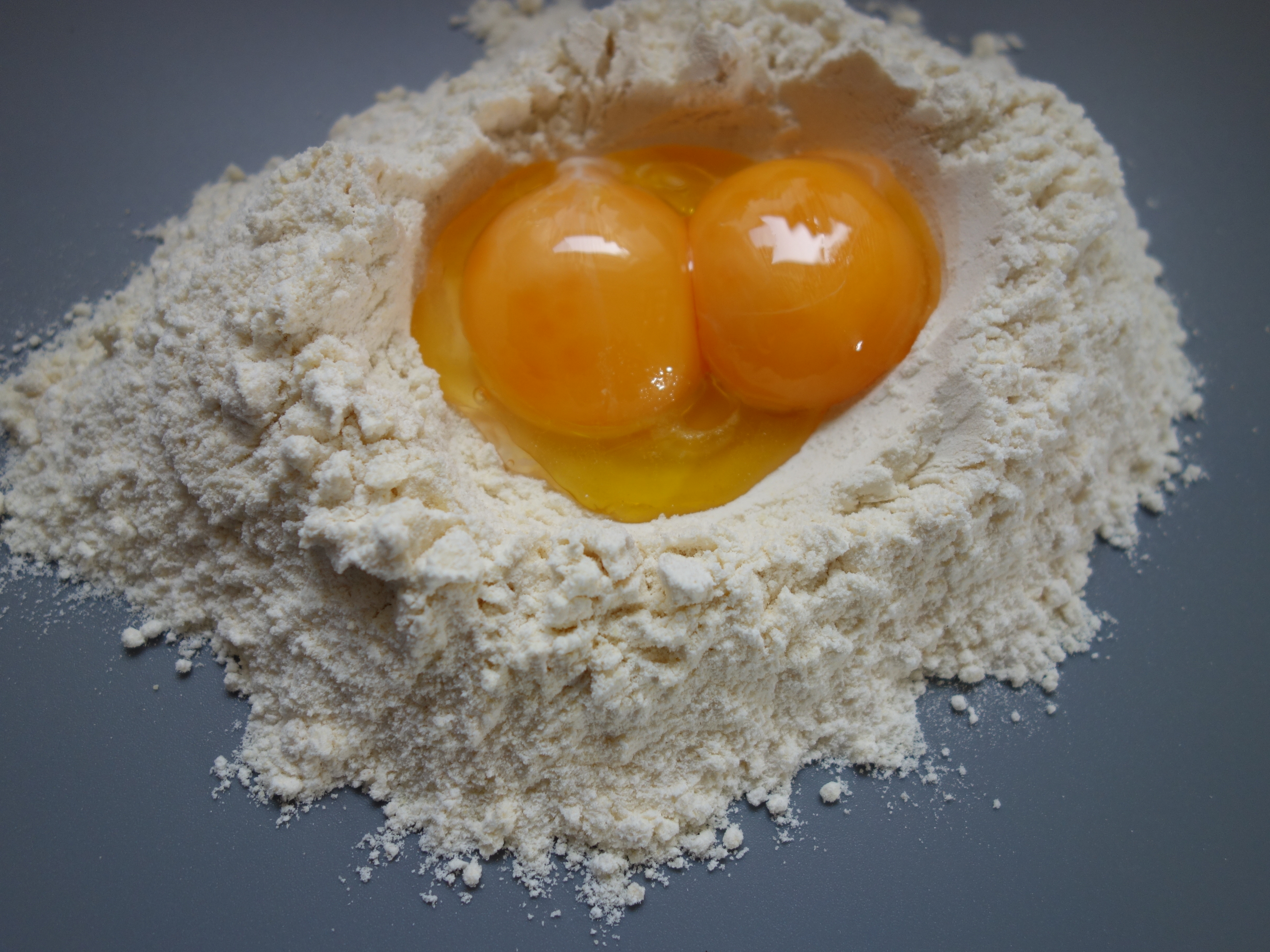 Tee jauhoista keko leivinalustalle, koverra keskelle kekoa kuoppa lisää kuoppaan loput raaka-aineet. Sekoiota varovasti jauhoja keskiosaan, niin, että öljy ja kananmunat eivät pääse luiskahtaamn keon reunojen yli. Kun keskiosa ei enää ole juoksevaa, vaivaa kaikki jauhot taikinaan. Vaivaa leivinlaudalla kunnes taikina on sileää eikä enää murene.