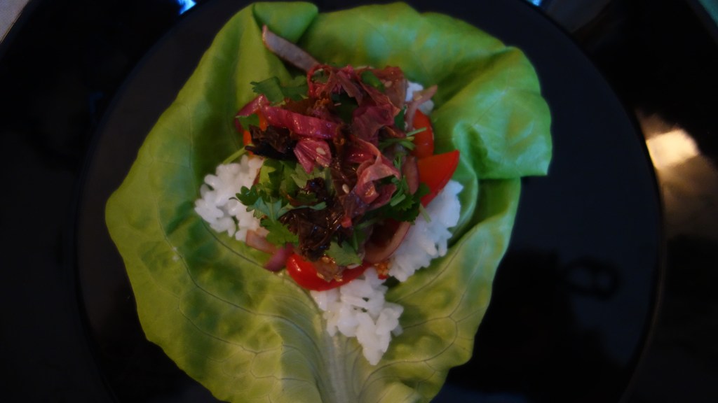 - Mikäli ruoka on hankala syödä salaatinlehdessä, voi sen toki syödä myös suoraan lautaselta