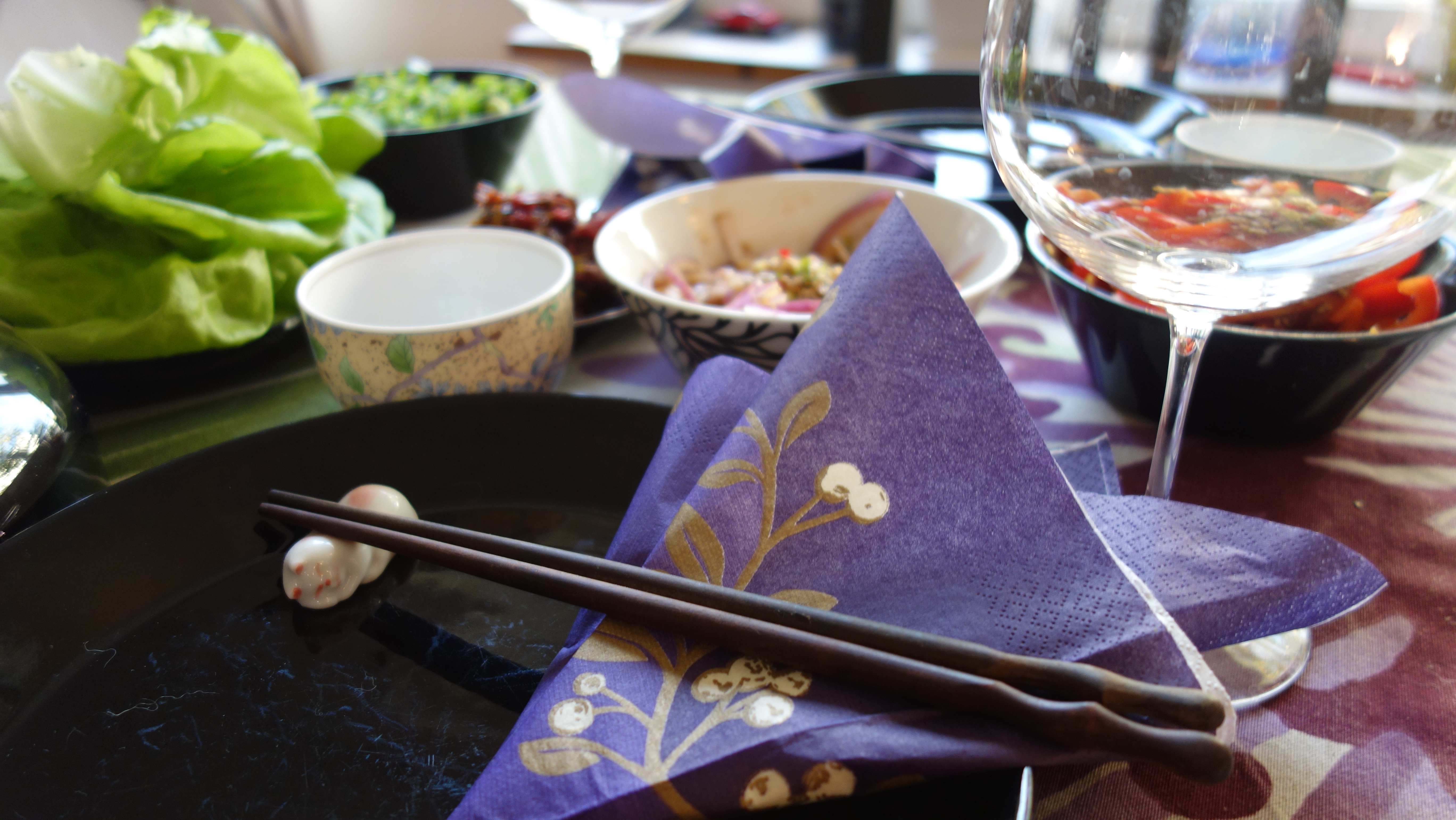 Bulgogi on parhaimillaan pöydässä paistettuna, tähän voi käyttää tavallista pöytägrilliä, meidän tapauksessa käytimme raclette -grilliä. Valmistele siis kaikki tarvittavat raaka-aineet valmiiksi, kata pöytä ja lämmitä grilli. Bulgogi on kuin Korealainen tortilla, jokainen laittaa siihen niitä aineita mistä itse eniten pitää.
