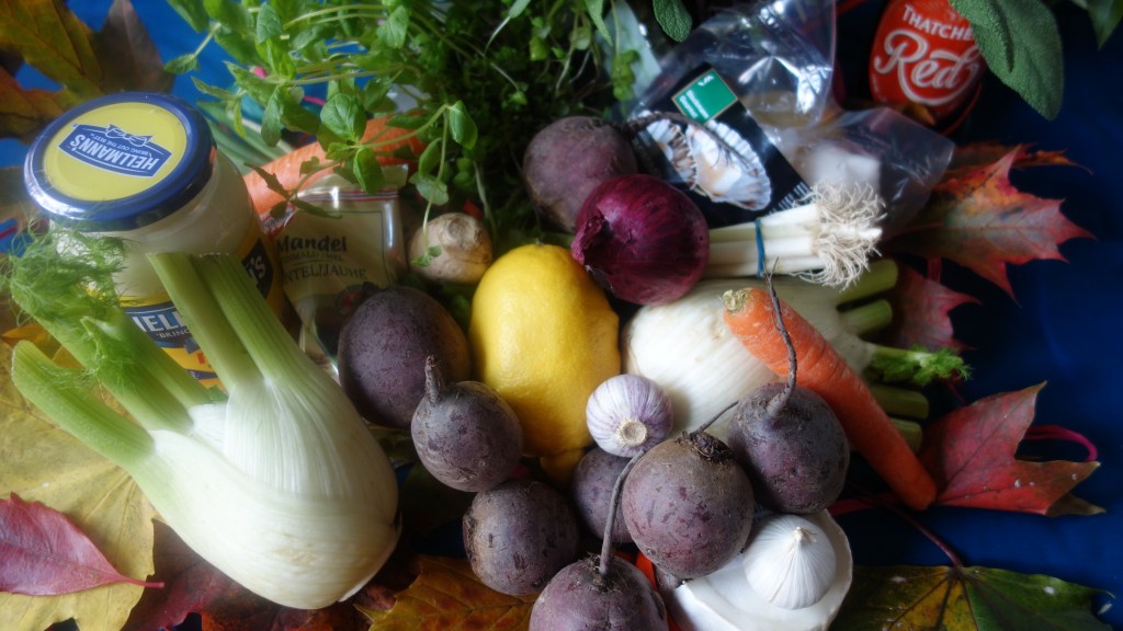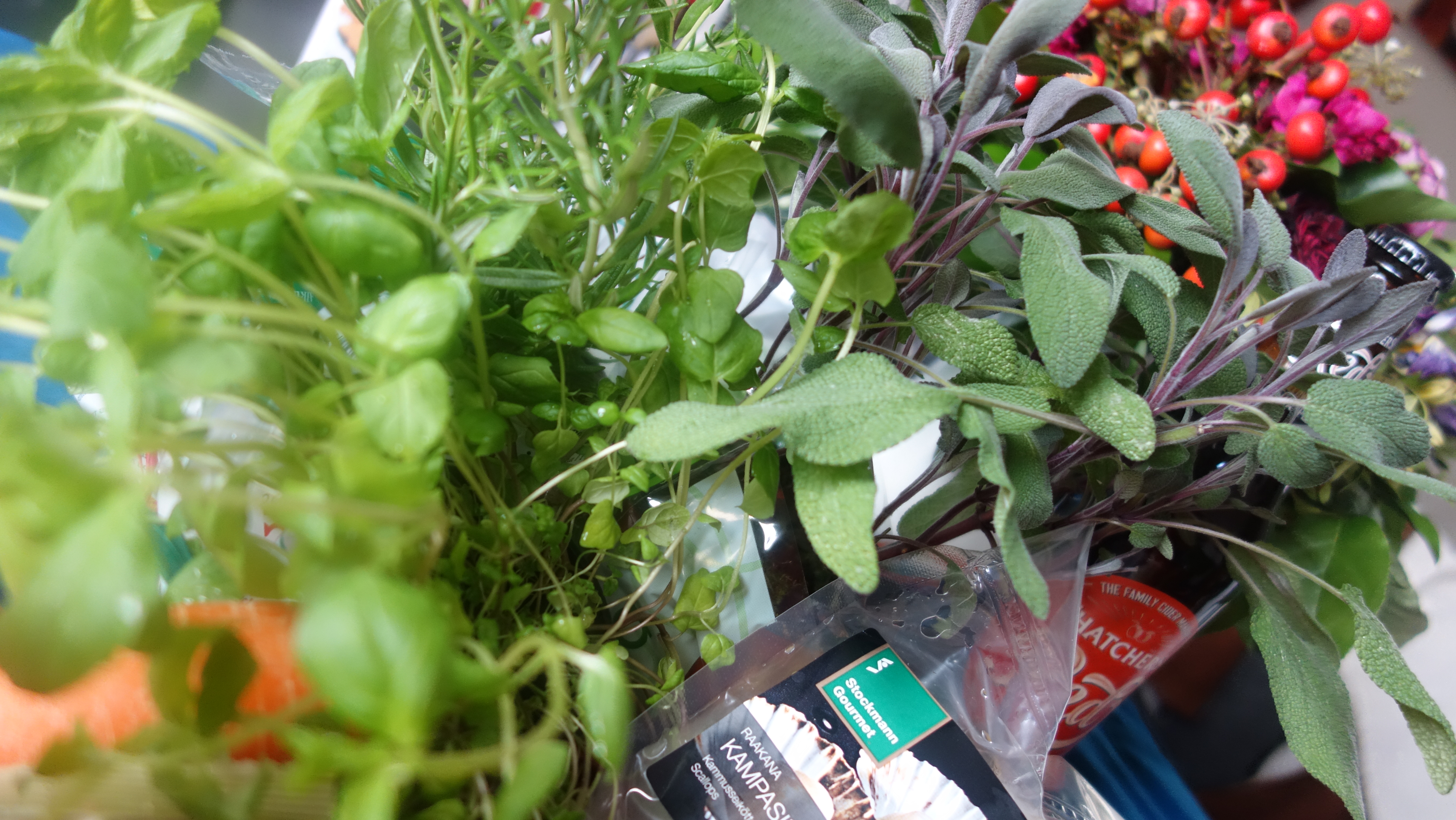 Vihdyin erityisen hyvin kasvisoastolla, mukaan tarttui sitruunoita, punajuuria, fenkolia, valkosipulia, salviaa, rosmariinia, minttua, kevätsipulia…. Mustajuuri jäi kuitenkin saamatta, sitä en löytänyt!