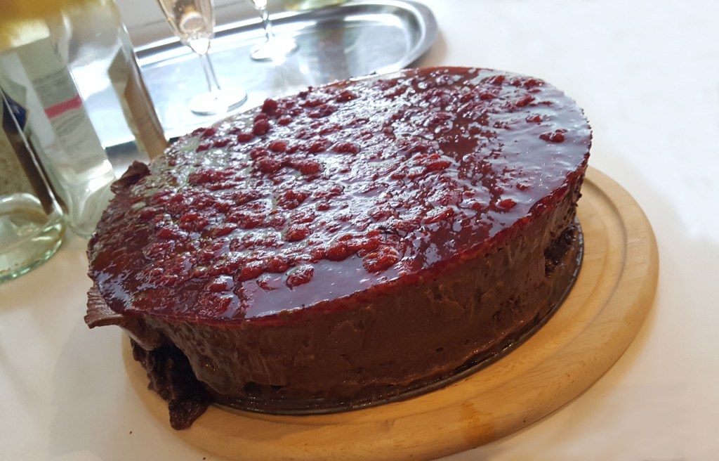 Eilen julkaisin ensimmäisen maidottoman ja gluteenittoman kakkuohjeen. Tässä vielä toinen, suklaamoussekakku vadelmakiilteellä!