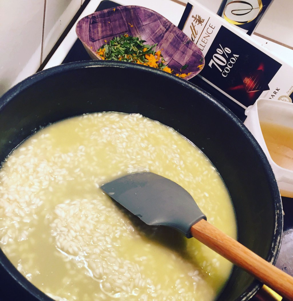 Kävimme joulukuun alussa Toscanassa ja sieltä tuliaisina tuli uusi risottoidea. Appelsiinirisotto, joka höystetään tummalla suklaalla.