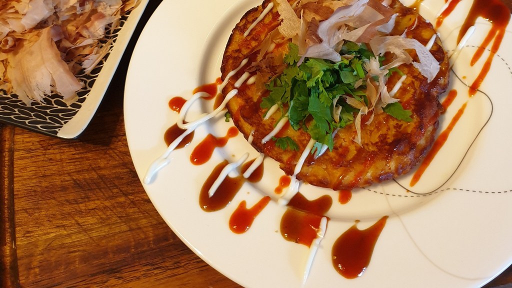 Okonomiyaki -pannareissa vain mielikuvitus on rajana, raasteeksi käy kaali ja juurekset tai niiden sekoitus. Päälle voi laittaa kastikkeita ja lisukkeita oman maun mukaan!