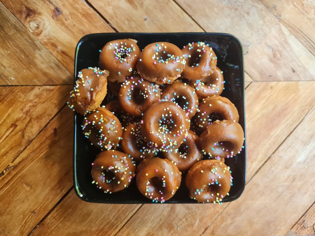 Mikäli käytät suurempaa donitstivuokaa,eism. 7cm Ø, lisää silloin paistoaikaa noin 15 minuuttiin.