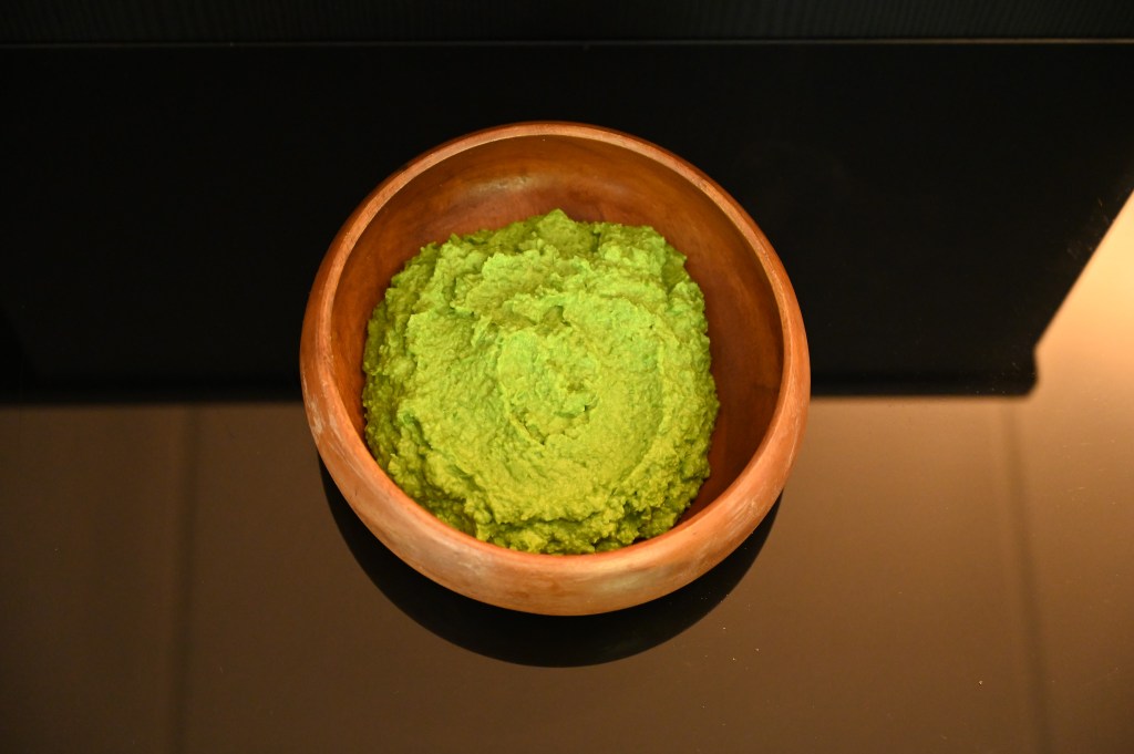 Kuori valkosipulin kynsi ja pilko neljään osaan. Kiehauta keskikokoisessa kattilassa suolalla maustettu vesi. Lisää kiehuvaan veteen herneet ja valkosipuli, keitä kahden minuutin ajan. Valuta herneet ja valkosipulit hyvin. Laita herneet, valkosipulit, voi ja Créme fraiche tehosekoittimeen. Soseuta ainekset. Lisää pyreeseen suolaa ja vihreää tabascoa oman maun mukaan.
